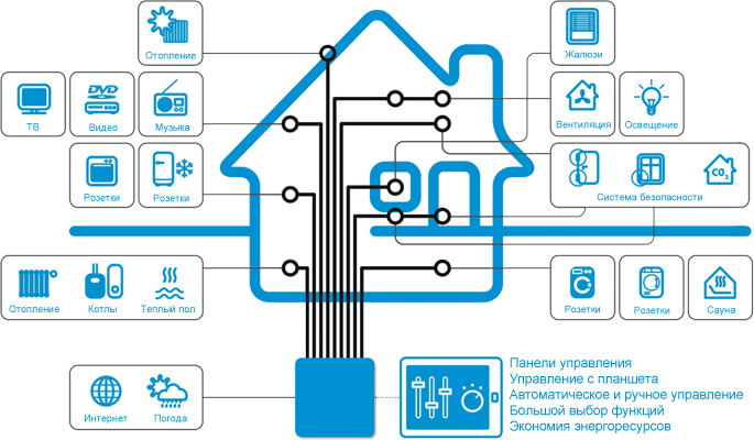АВТОМАТИЗАЦІЯ ПРИМІЩЕННЯ дозволить Вам управляти всіма системами вашого будинку за допомогою багатофункціональних вимикачів, настінних панелей, смартфона або планшета, а також надасть високий рівень комфорту, підтримуючи автоматично задані вами параметри температури, вологості і освітленості.